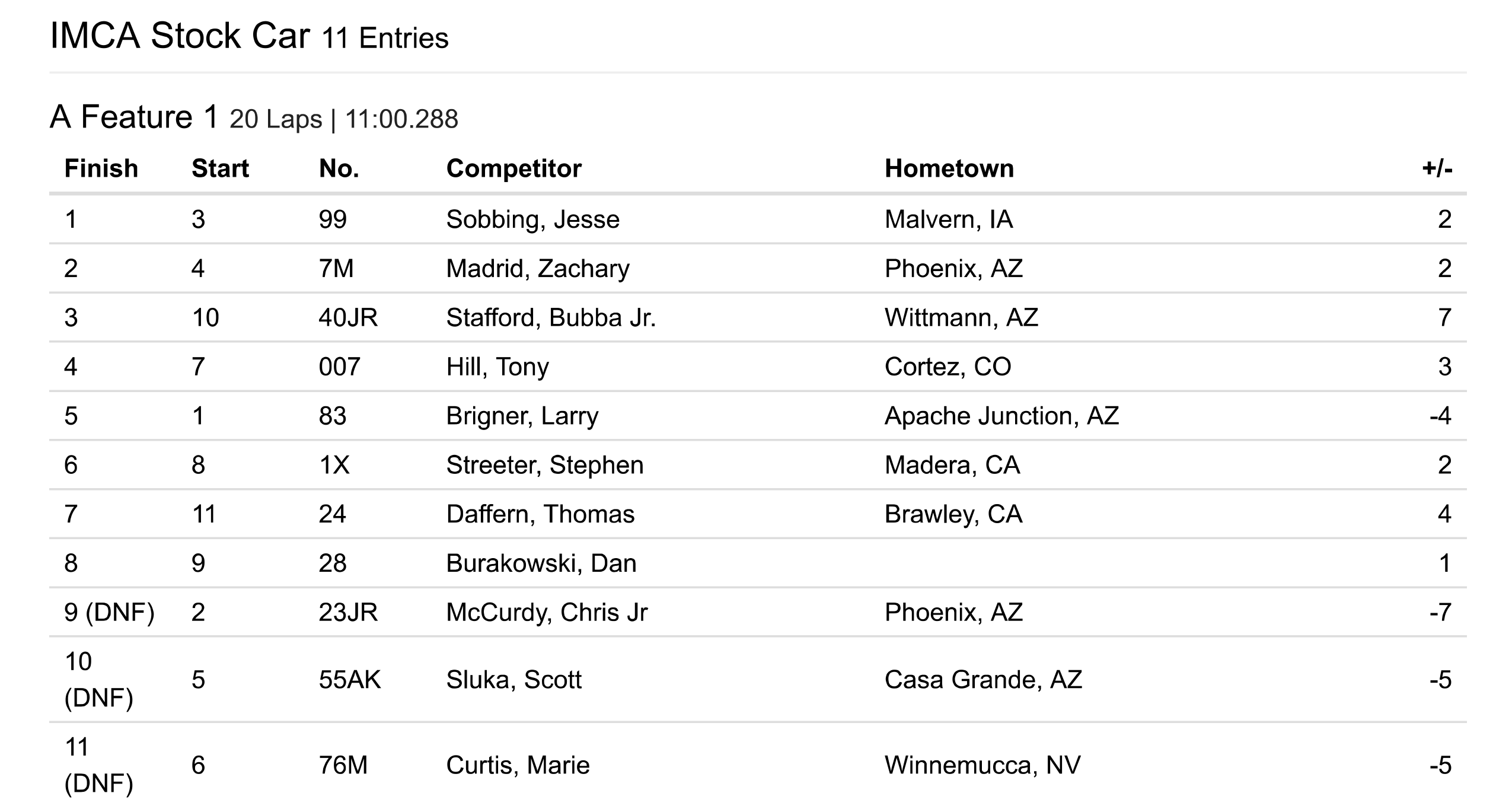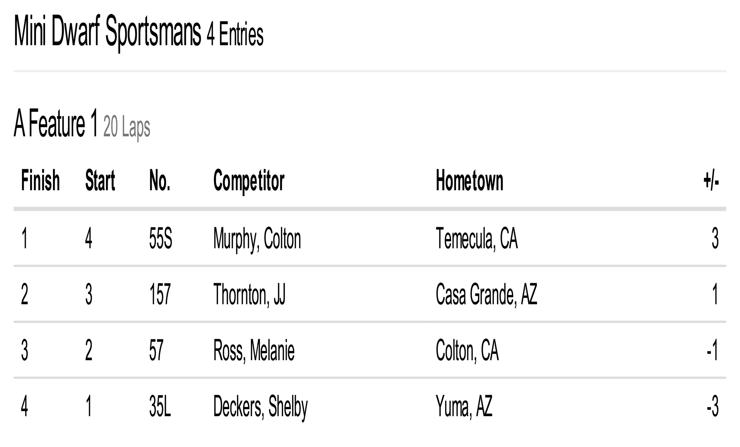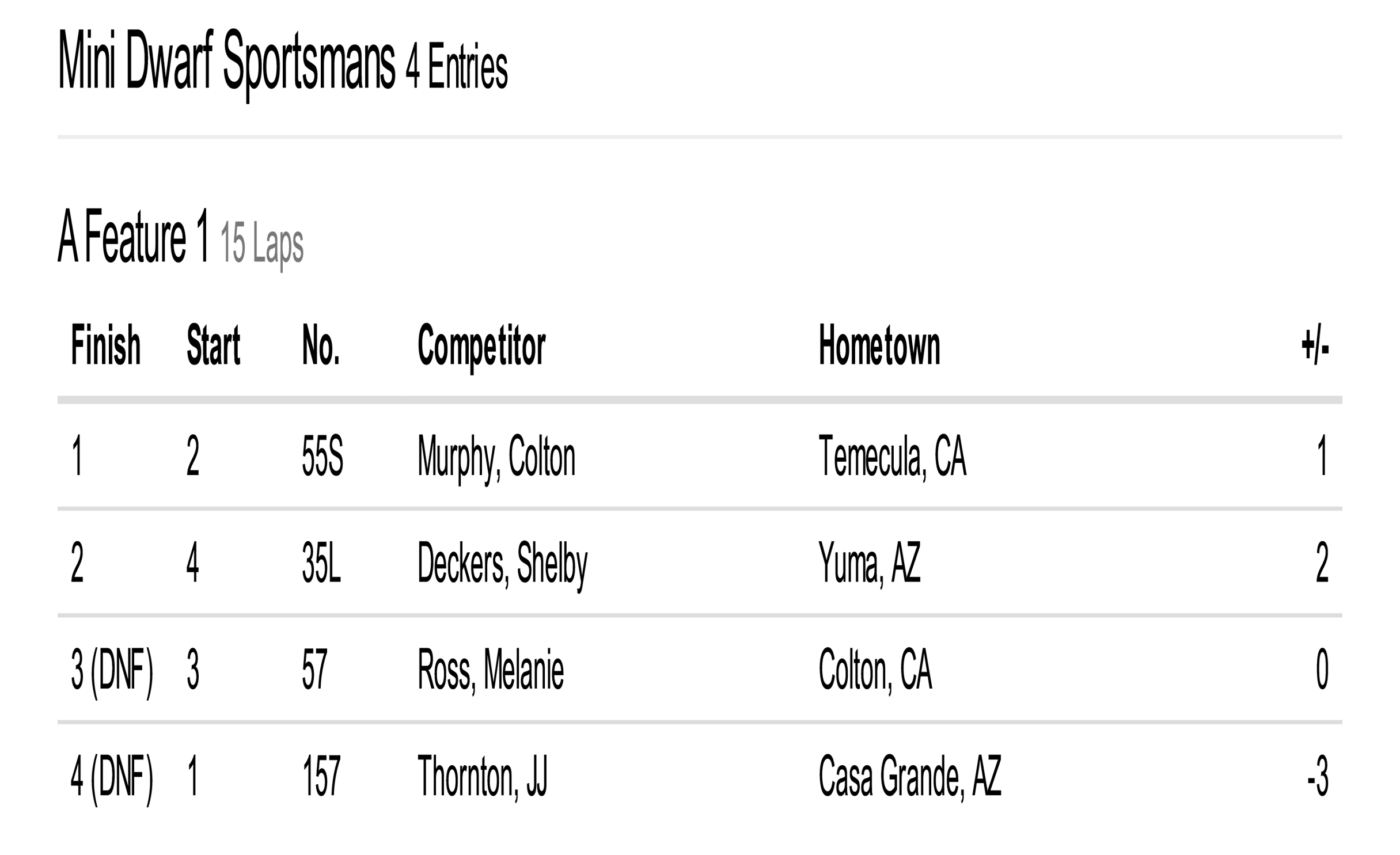 Cocopah Speedway has teamed up with Corning Motorsports to bring you official race results!