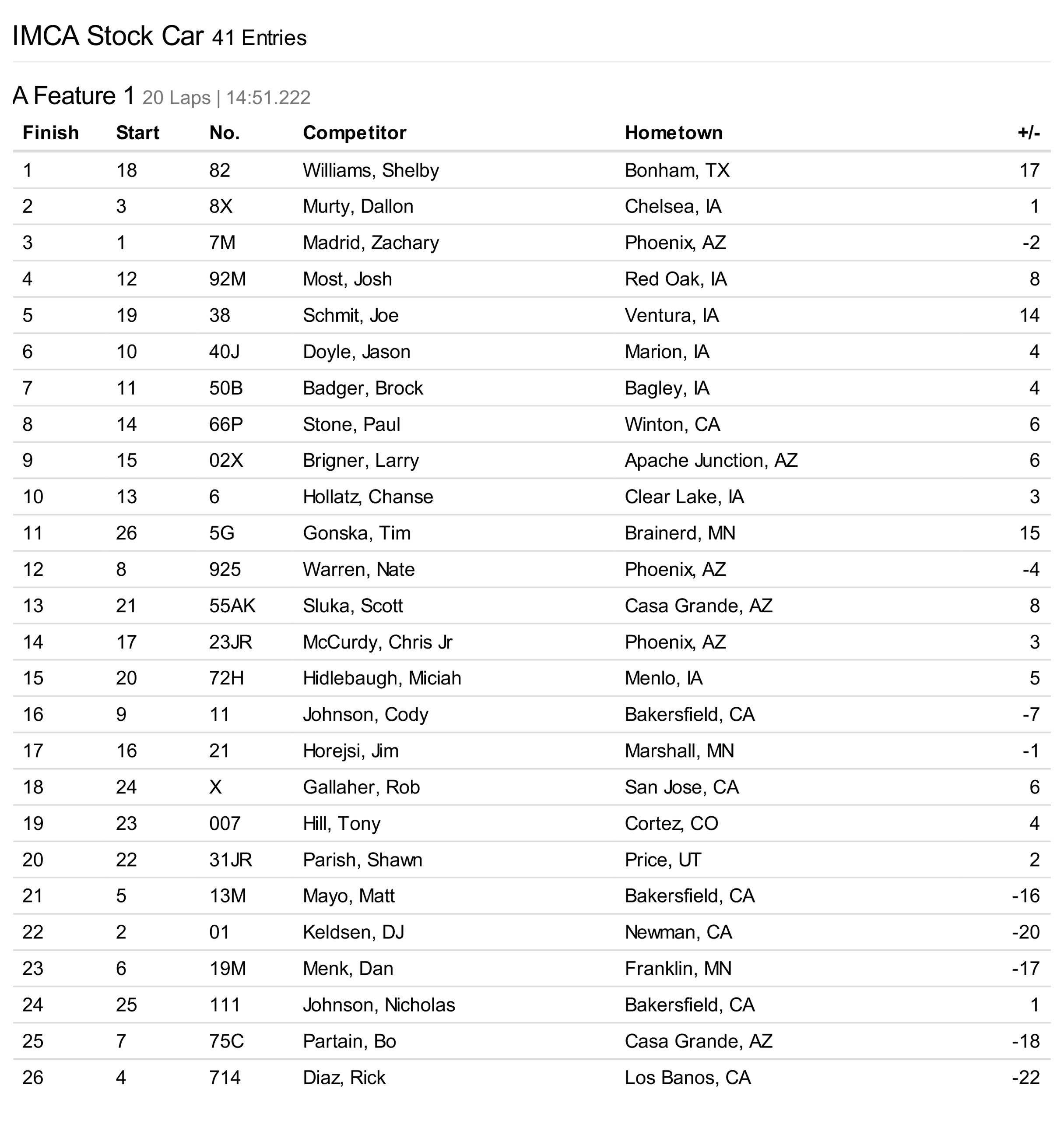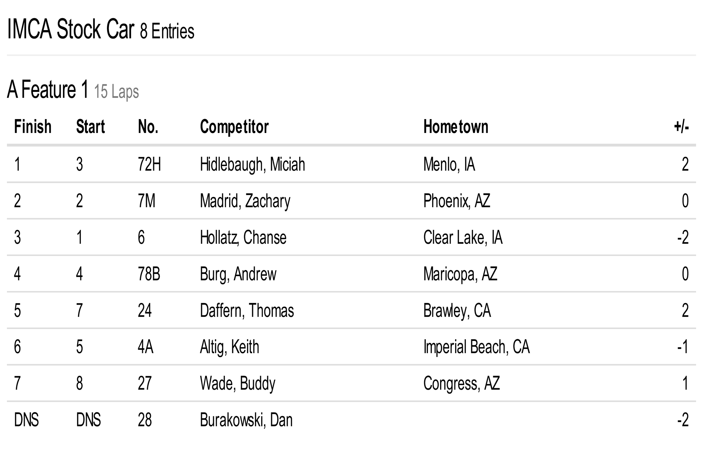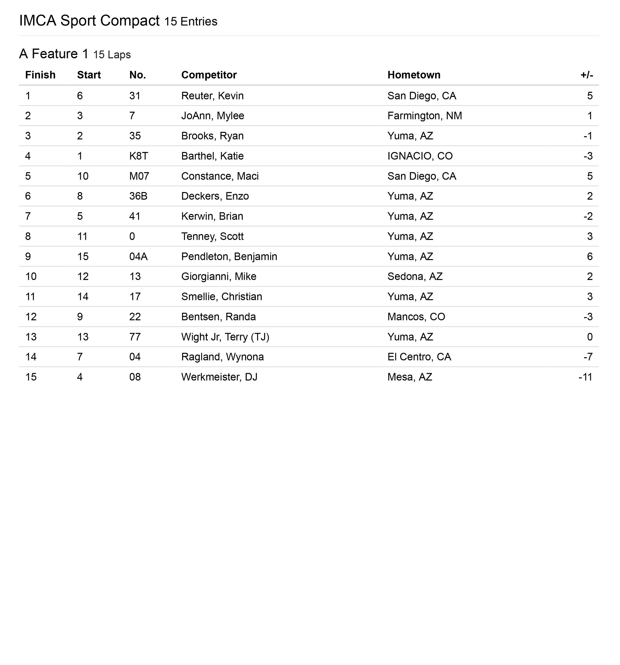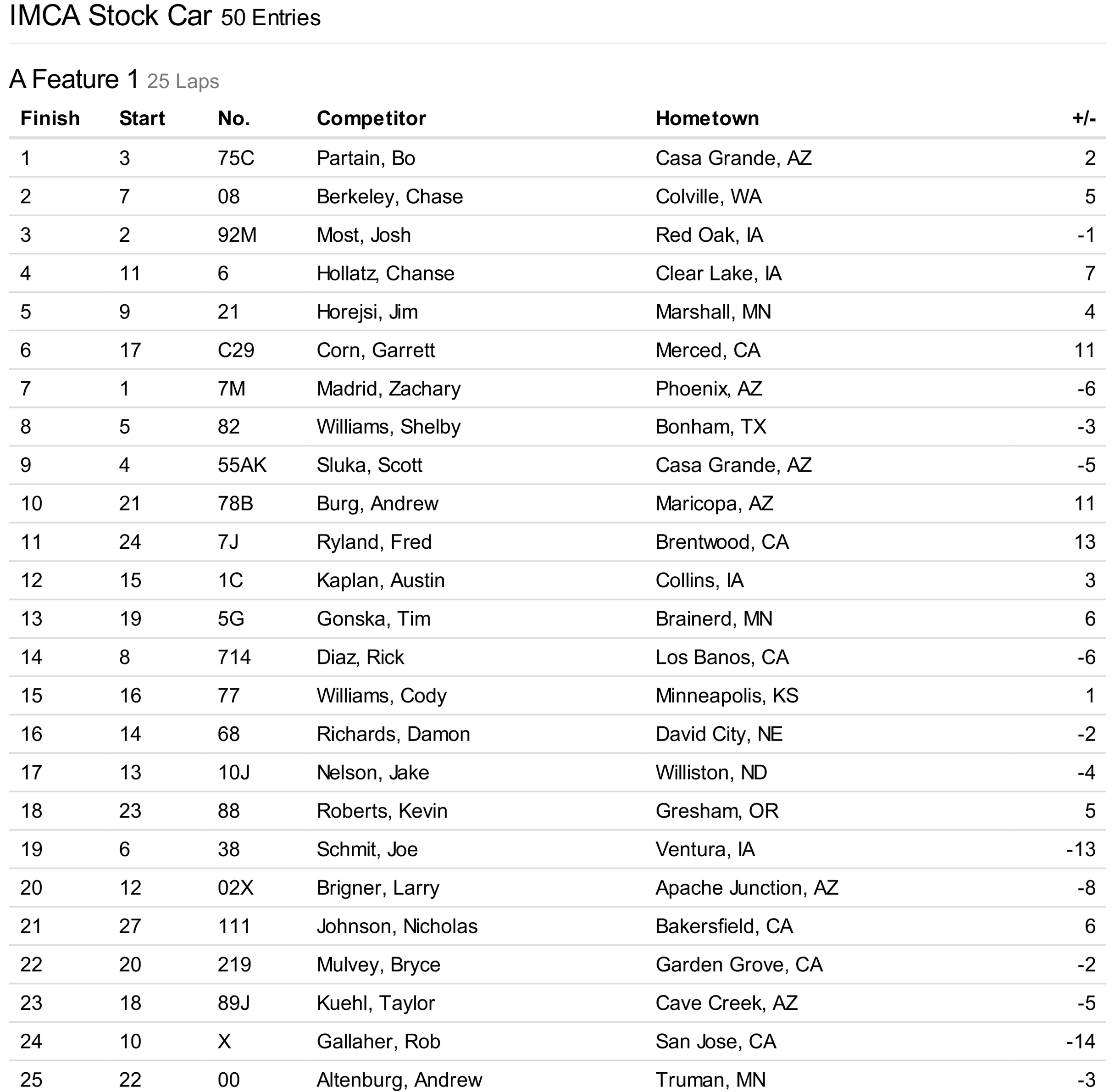 Cocopah Speedway has teamed up with Corning Motorsports to bring you official race results!